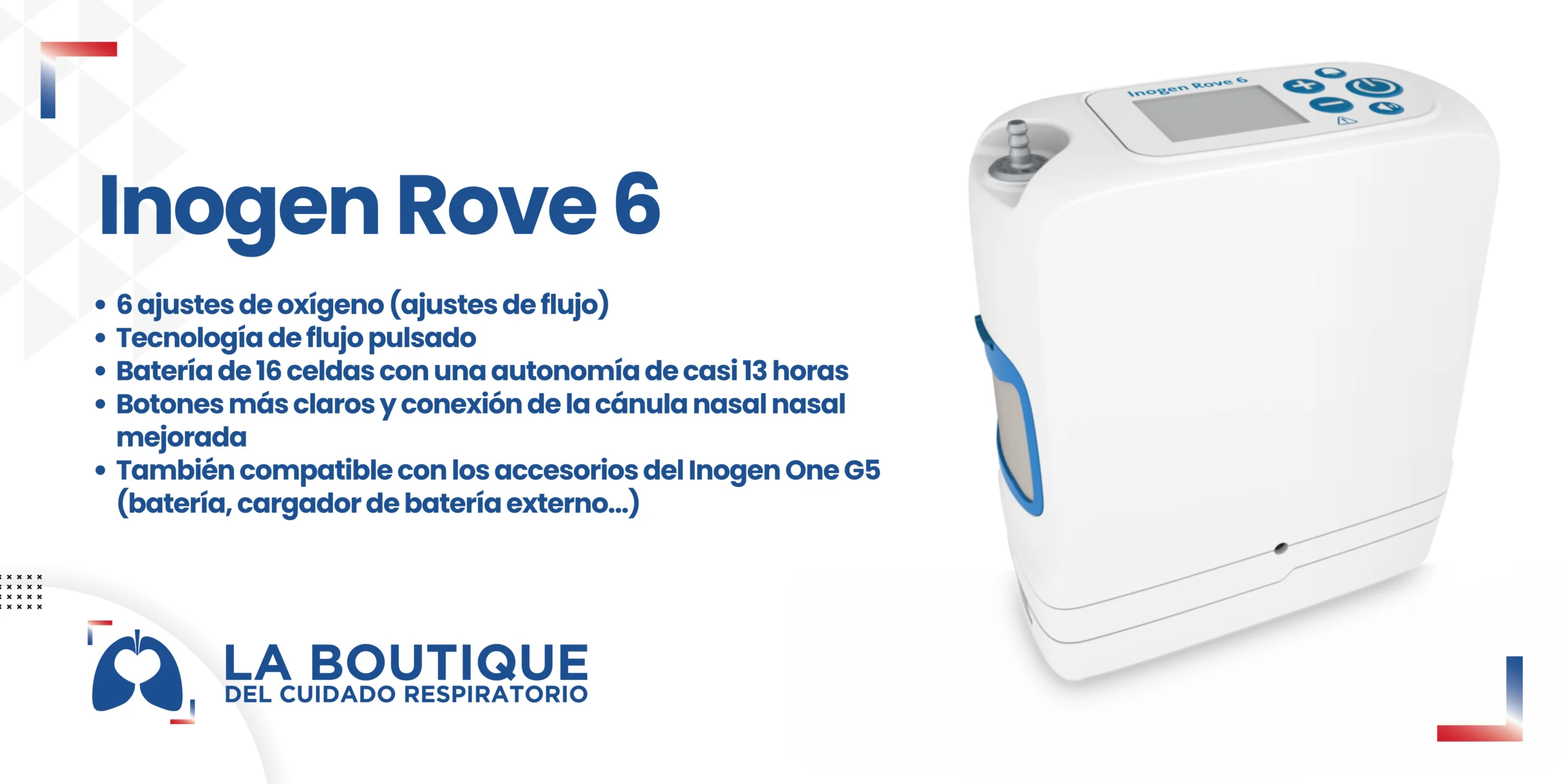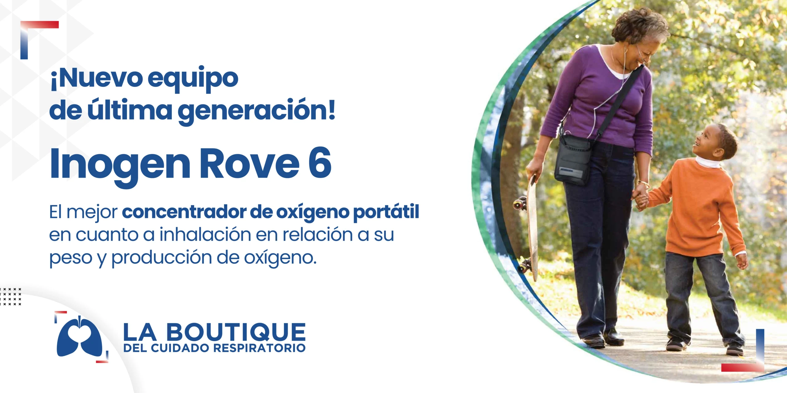El Inogen Rove 6 es la solución ideal para pacientes que buscan un concentrador portátil de oxígeno (POC) que maximice su alcance y flexibilidad para el suministro de oxígeno en un sistema silencioso, fácil de usar y de mantener. El Inogen Rove 6 está diseñado para brindar a sus pacientes la tranquilidad que les brinda sentirse listos para continuar con sus actividades habituales, como pasar tiempo de calidad con familiares y amigos, disfrutar del aire libre y viajar. Con 6 configuraciones de flujo, el Inogen Rove 6 es el POC más flexible que hemos ofrecido, suministrando hasta 1260 ml de oxígeno de grado médico por minuto.